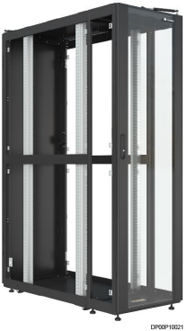 机柜满足以下特性: l 机柜内后部可安装两条竖装PDU2000。 l 机柜的垂直安装上标示有每“U”的位置。 l 机柜的前门和后门带锁,并只能用专用钥匙才能打开。 l 机柜支持底座安装。 图3-3 DC 基础设施一体柜外观