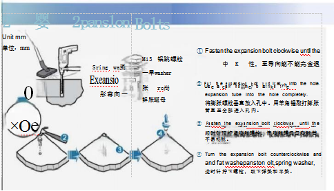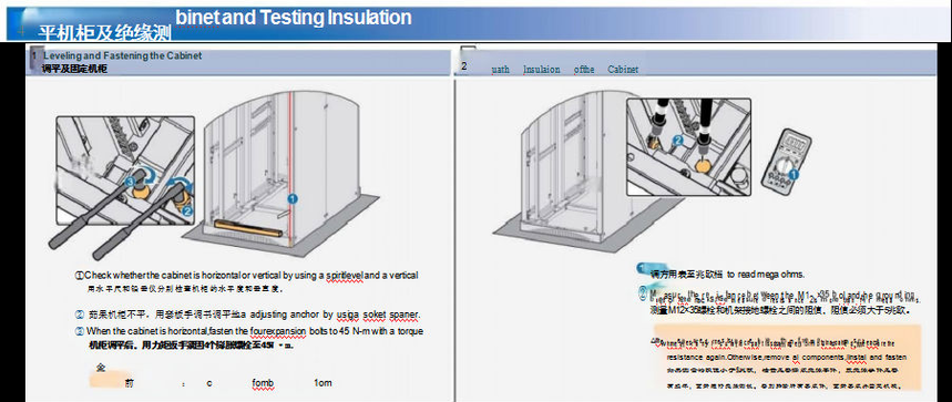 将机柜放在规划好的位 s使机柜的安g 孔对l准相应的i膨胀螺l栓孔 ② caIfbtinetneInsi r anotthher cain i attionndpila eertundeertnheulotihoern pslai uofdetrh cabinet.Ensure that the gaps properly lock the expansion bolts. 沿机柜深度方向,在机柜下面分别从前后推入绝缘板,确保缺口朝 内侧并卡入膨胀螺拴。 ③ e  si he spboltsriI ertg wath er,fa towastheer anh s Insu ndtion tighte e othethe four xp弹an势sio、n平b lt和s  i套t,b t 入d 个n t 胀fa te栓n 中th,em插. 入膨胀管井与膨胀 螺母预拧紧。