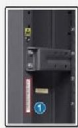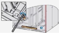门下端的轴销与机柜下围框上的轴销 孔对准后,将轴销插入轴销孔内。 ② Pull down the hook pin at the upper part of the door panel.Align the hole